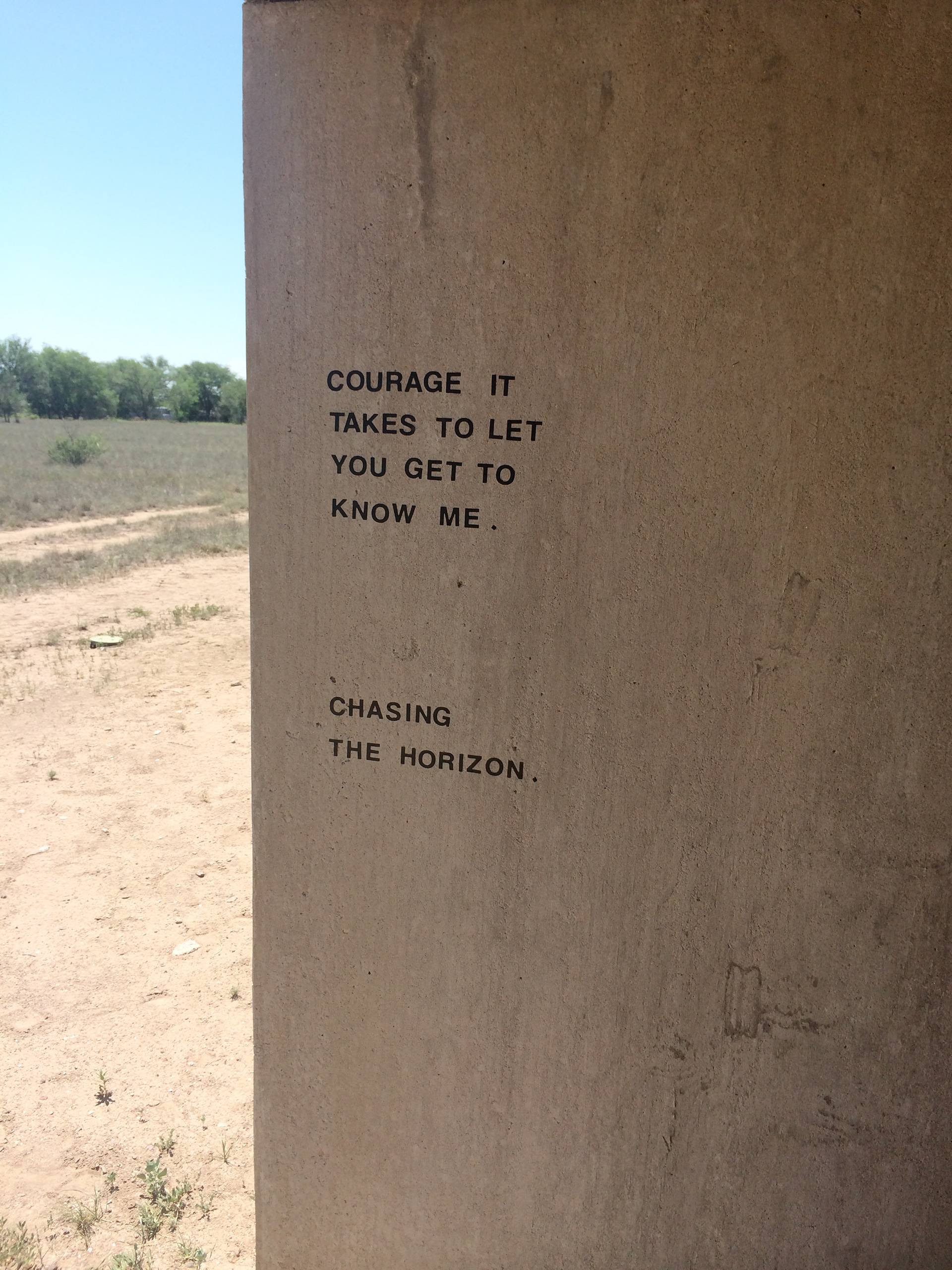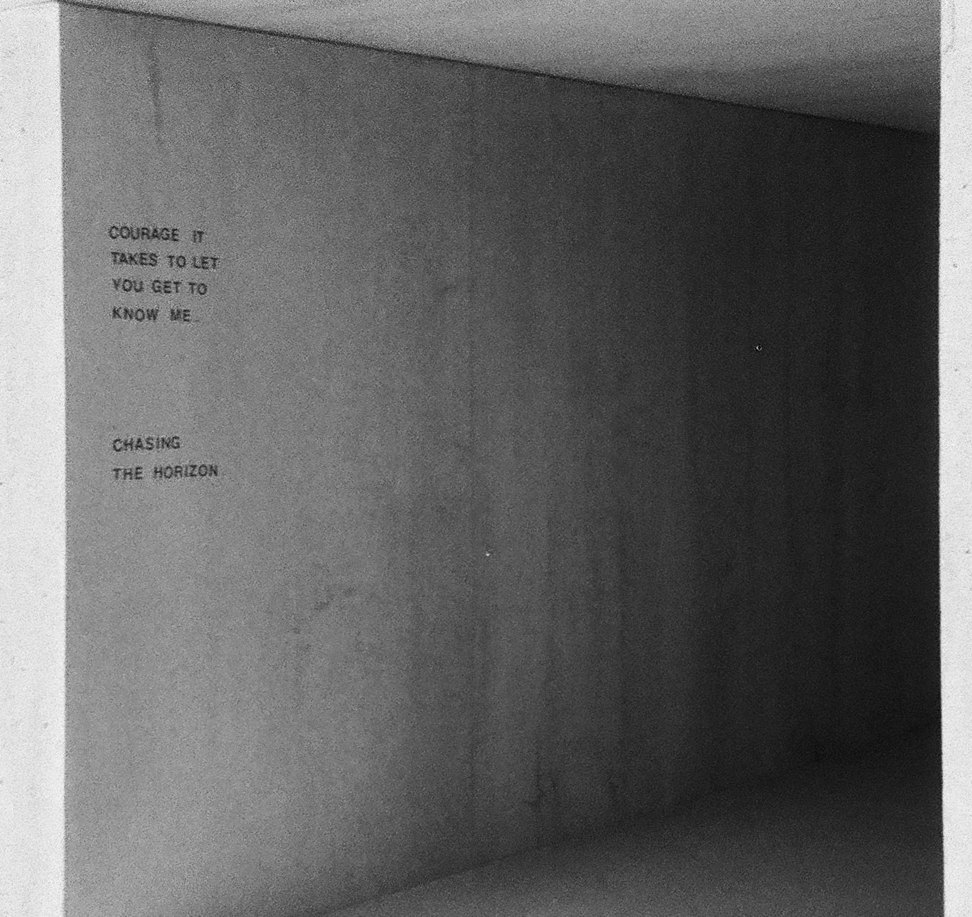 Chasing The Horizon (Love Letter For Donald Judd), vinyl letters on concrete box 1A, (15 Untitled Works In Concrete, Donald Judd) installation detail, Chinati Foundation, Marfa Texas, 2014