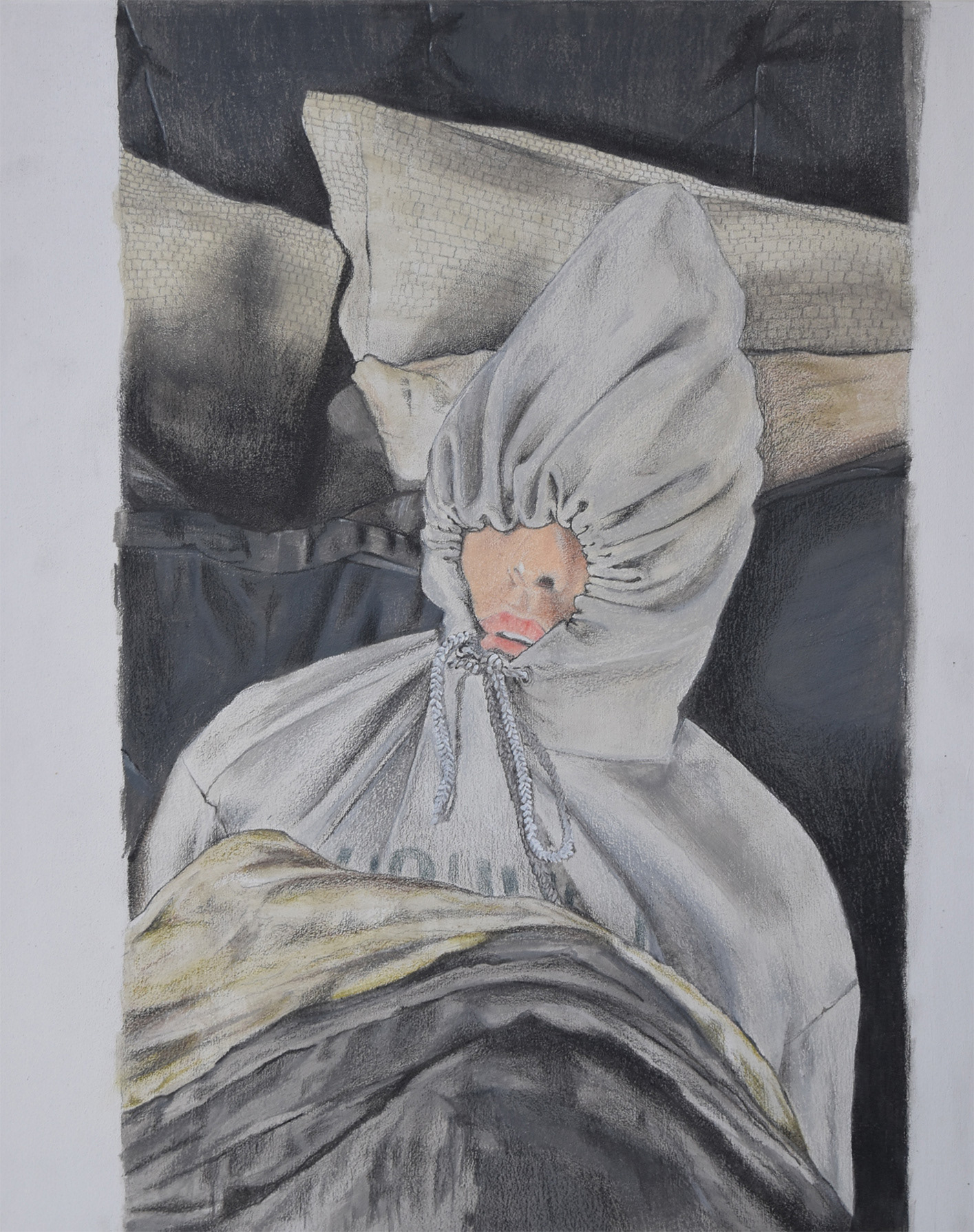 Fundamentally, intimacy is our greatest anaesthesia, acrylic on geotextile, 16 x 23 in. - 2021