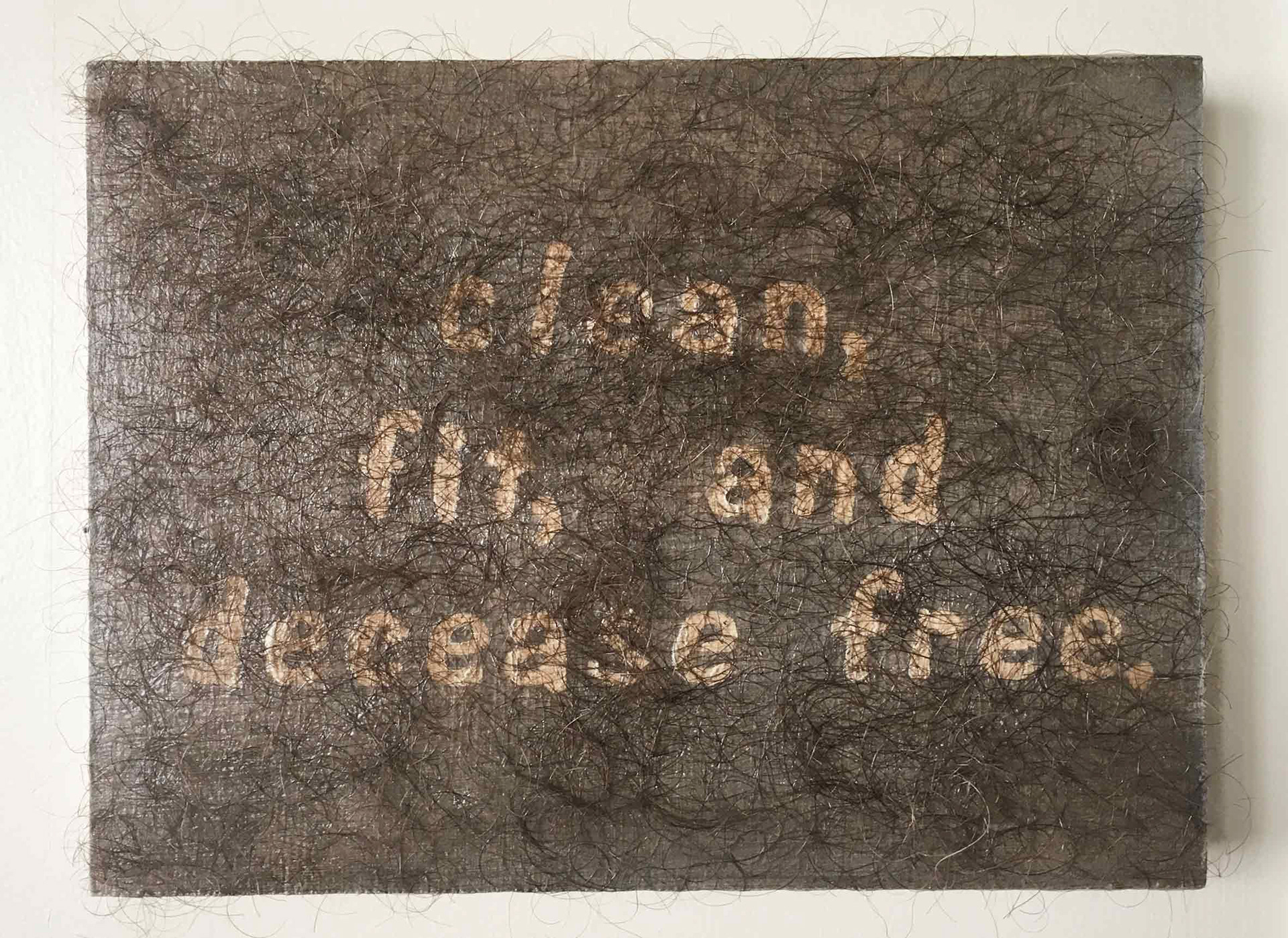 Decease Free, 2016 - photo transfer, oil paint, semen, pubic hair, resin, on wood, 8" in. x 6" in. x 3/4" in.