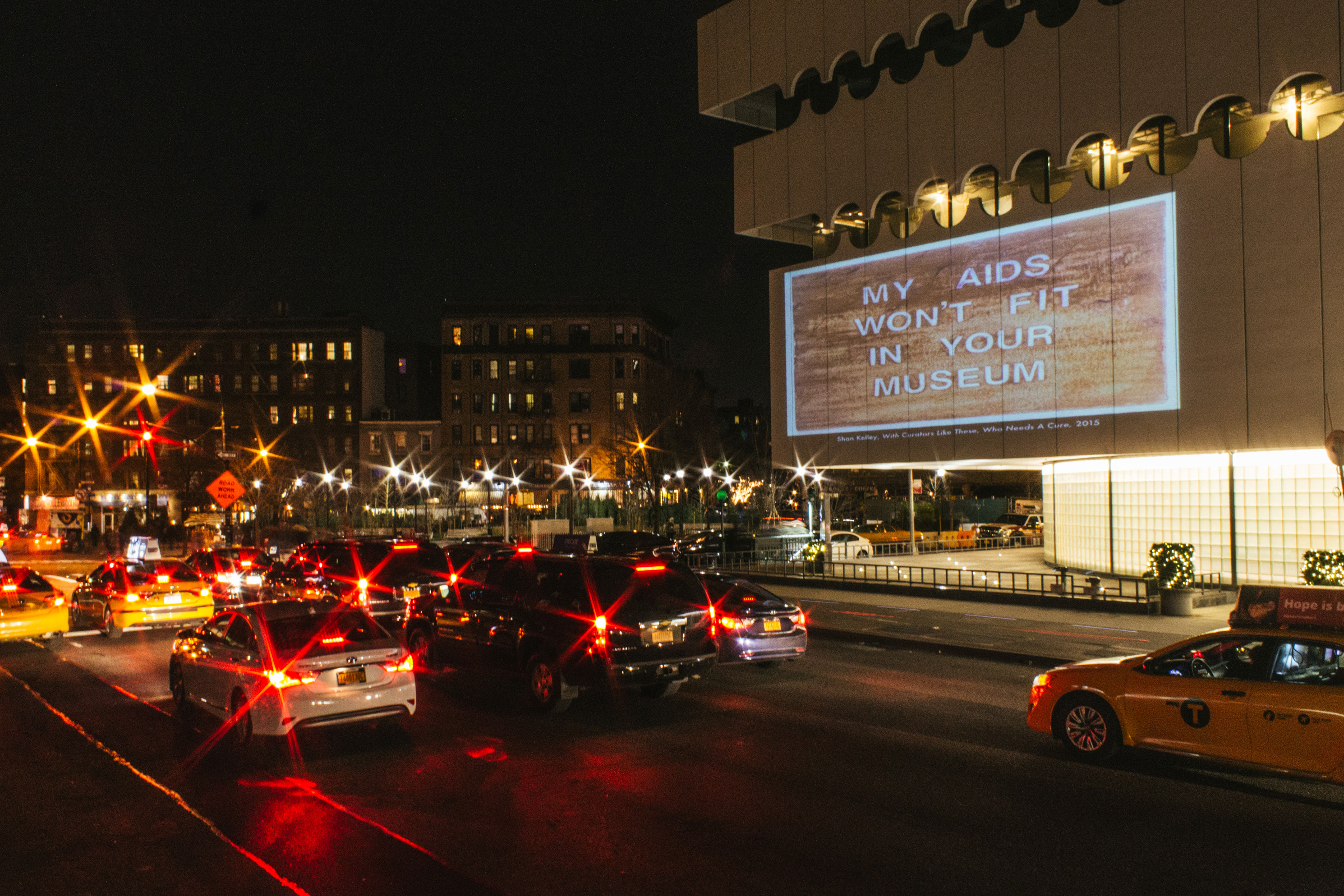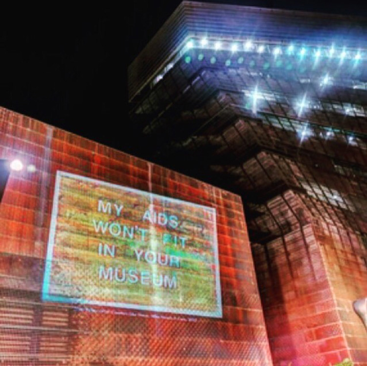 Projection of Radiant Presence by Visual AIDS, on the former site of St. Vincent's Hospital , NYC, for 26th annual Day With(out) Art / World AIDS Day, 2015