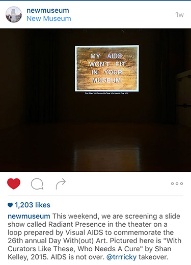 Press image for Radiant Presence by Visual AIDS, Photo Credit: New Museum, 2015