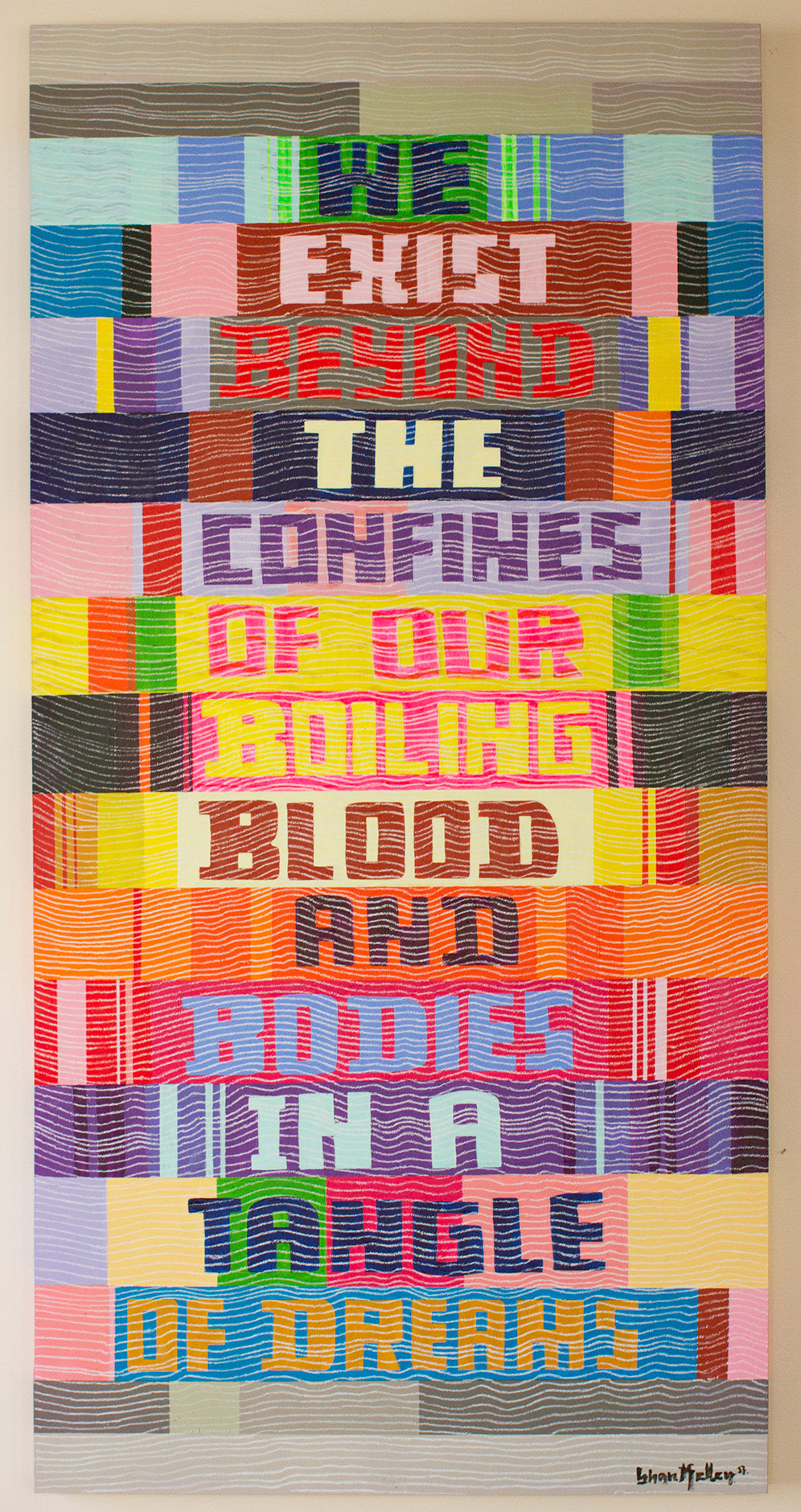 Tangles, acrylic, coloured pencil, on birch panel, 24 x 48 in. 2017 (Private Collection)